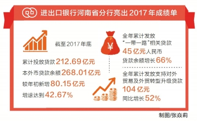 1月29日,進(jìn)出口銀行河南省分行行長(zhǎng)吳啟金表示,過去一年,分行努力貫徹習(xí)近平新時(shí)代中國特色社會(huì)主義思想,助力河南打造內(nèi)陸開放新高地。截至2017年底,進(jìn)出口銀行河南省分行累計(jì)投放貸款212.69億元,本外幣貸款余額268.01億元,有力助推我省企業(yè)“走出去”。