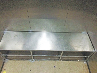 昨天,記者來到李先生所在小區(qū)52號(hào)樓,該樓一共3部電梯,其中一部顯示正在維修,而另一部電梯內(nèi),緊挨梯廂里側(cè),焊接了一個(gè)寬約30厘米的座椅。第三部內(nèi)尚未安裝座椅。