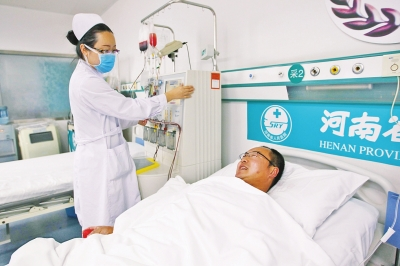 “患者在生死線上掙扎著,咱得救人一命?!弊蛱焯稍诤幽鲜∪嗣襻t(yī)院造血干細(xì)胞采集室床上,范連軍笑著說。